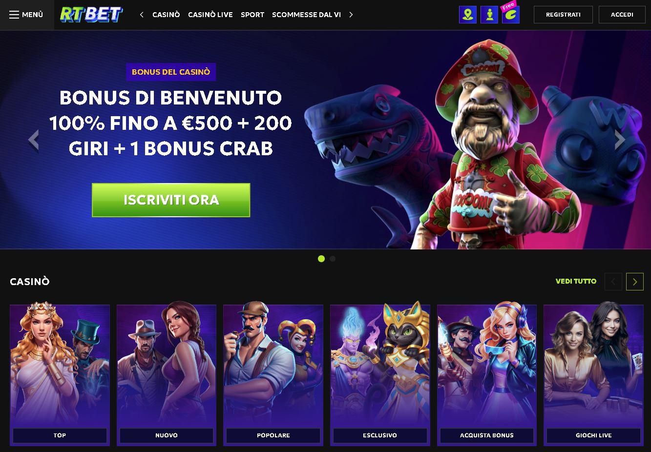 RTBet è il sito di casinò sociale definitivo per gli utenti mobili, offrendo le migliori slot e la possibilità di vincere grandi jackpot – senza alcun costo! registri ora, riceverai un Bonus del 100% fino a $500 + 200 Giri Gratuiti.